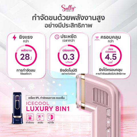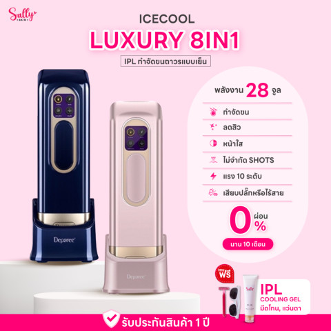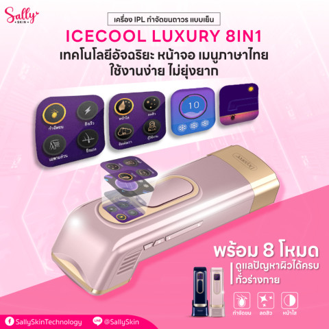(มีอย.)(ประกัน 1 ปี) ICECOOL LUXURY 8in1 เครื่อง IPL แบบเย็นระดับพรีเมียม สำหรับกำจัดขน ฟื้นฟูผิวหน้าใส และโหมดลดสิวในเครื่องเดียว พร้อมหน้าจอเมนูภาษาไทย ใช้งานง่าย เหมาะทั้งมือใหม่และผู้ที่ต้องการผลลัพธ์แบบดูแลตัวเองที่บ้านอย่างคุ้มค่า