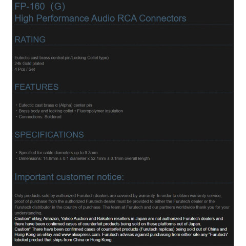 สินค้า: หัว RCA Plug FURUTECH 160G NEW Version (Audio Grade)