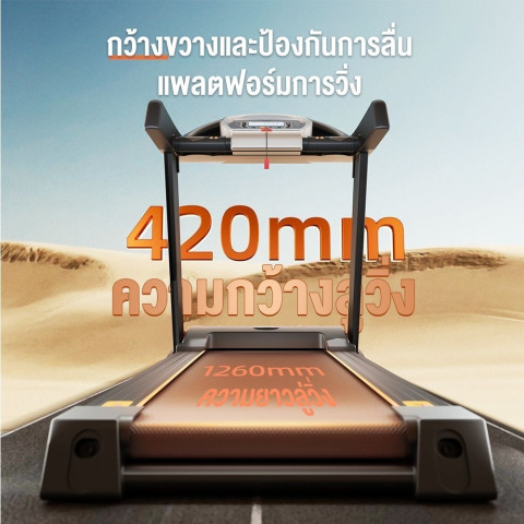 พื้นที่วิ่งกว้าง 126 × 42 ซม. พร้อมพื้นผิวกันลื่นลายเพชร ให้ก้าวมั่นคงเหมือนลู่วิ่งระดับฟิตเนส
