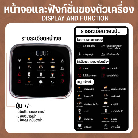 เมนูเสริม: ชงกาแฟบด / น้ำร้อน / ฟังก์ชันล้างเครื่อง