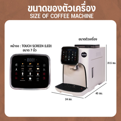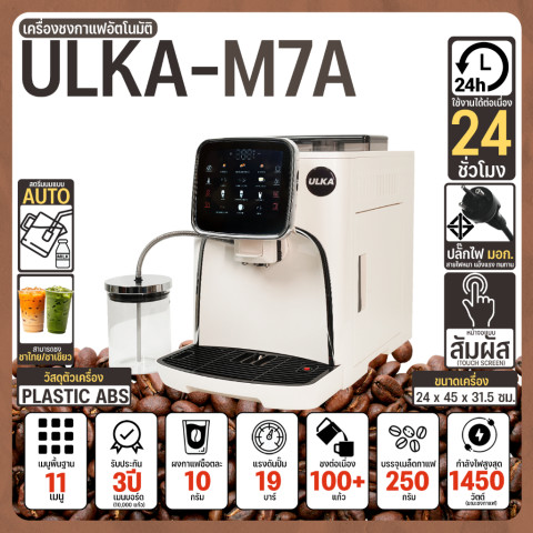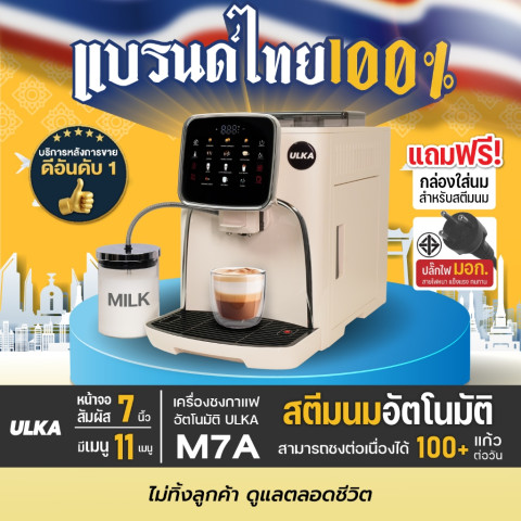 (ขายดี) เครื่องชงกาแฟอัตโนมัติ ULKA M7A ครบจบในเครื่องเดียวด้วยระบบ สตรีมนมอัตโนมัติ + หน้าจอสัมผัส ใช้งานง่าย รองรับงานหนัก ชงได้มากกว่า 100 แก้ว/วัน เหมาะทั้งมือใหม่และธุรกิจที่ต้องการความเสถียรในทุกแก้ว พร้อม ปลั๊ก/สายไฟมาตรฐาน มอก. เพิ่มความปลอดภัยในการใช้งานที่บ้านและในร้าน