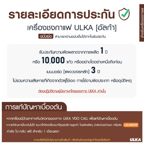 ระบบการทำงาน/ความผิดพลาดจากการผลิต รับประกัน 1 ปี หรือ 10,000 แก้ว