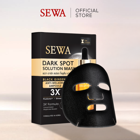 SEWA DARK SPOT SOLUTION MASK เซวา มาส์กโสมดำ 3X มาส์กบำรุงผิวเข้มข้นเพื่อคนที่กังวลเรื่องฝ้า กระ และจุดด่างดำ ช่วยฟื้นคืนผิวให้ดูสว่าง กระจ่างใส และเรียบเนียนขึ้นอย่างเป็นธรรมชาติ ด้วยพลังการบำรุงจาก “โสมดำ 3X” ที่มอบการดูแลล้ำลึก พร้อมเติมความชุ่มชื้นให้ผิวดูอิ่มฟู สุขภาพดีหลังใช้