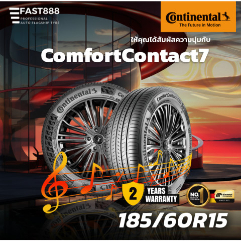 ยางปีใหม่ล่าสุด Continental 185/60 R15 รุ่น ComfortContact CC7 (ขอบ 15) สำหรับรถเก๋ง/อีโคคาร์/ซิตี้คาร์ ในราคา 4,500.00 บาท คุ้มค่าทั้งความนุ่มเงียบ ความทนทาน และการประหยัดน้ำมัน เหมาะกับการใช้งานในเมือง ขับสบายมั่นใจทุกวัน