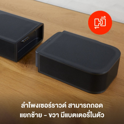 รองรับ Dolby Atmos และ DTS:X มอบมิติเสียงสูง-ต่ำ-ซ้าย-ขวา ชัดเจนเหมือนอยู่ในฉากจริงลำโพงเซอร์ราวด์ถอดแยกได้ พร้อมแบตเตอรี่ในตัว