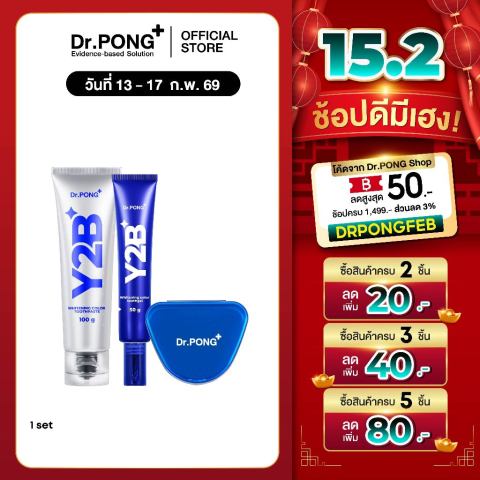 Dr.PONG Y2B WHITENING COLOR SET (TOOTHPASTE + TOOTH GEL) เซ็ตดูแลช่องปากครบขั้นตอน ช่วยลดคราบเหลืองและคราบสะสมจากชา กาแฟ และอาหาร พร้อมให้ลมหายใจสดชื่นและความรู้สึกสะอาดแบบ “ฟันลื่น” หลังแปรง เหมาะสำหรับผู้ที่ต้องการดูแลสีฟันให้ดูขาวใสขึ้นอย่างมั่นใจในทุกวัน