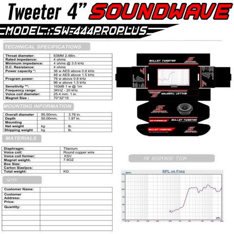รายละเอียด Aluminum Bullet Tweeter (SW-444Proplus)