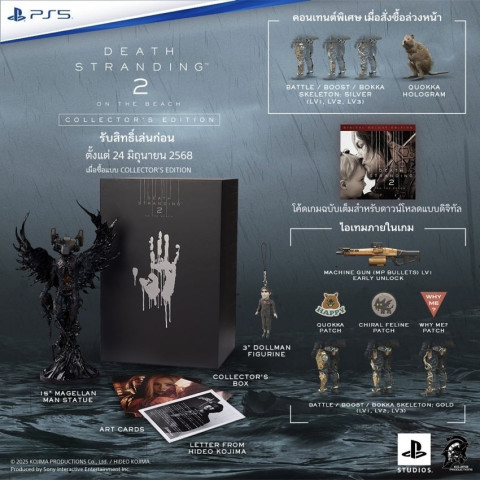 พร้อมส่ง PS5: Death Stranding 2: Collector's Edition (Asia) ชุดสะสมสุดพิเศษสำหรับแฟน ๆ ผลงานของ Hideo Kojima ที่อยากได้ทั้งตัวเกมและของสะสมระดับไอคอนิกในกล่องเดียว เหมาะสำหรับเก็บโชว์และเพิ่มคุณค่าให้คอลเลกชันของคุณ