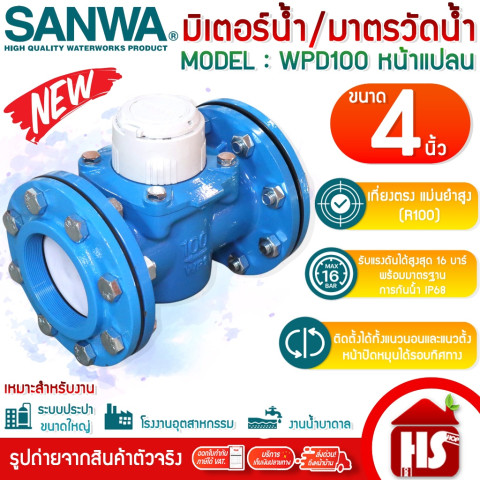 SANWA ซันว่า มิเตอร์น้ำแบบหน้าแปลน ระบบใบพัด Woltman รุ่น WPD100 ขนาด 4" (4 นิ้ว) ราคา 13,890.00 บาท