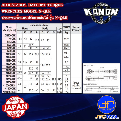 รุ่น/ซีรีส์: N-QLK (Adjustable, Ratchet Torque Wrenches)