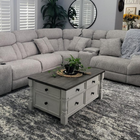 เติมความอบอุ่นแบบวินเทจให้ห้องนั่งเล่นด้วยโต๊ะกลางดีไซน์สองโทนจาก Ashley Furniture แบรนด์เฟอร์นิเจอร์อันดับ 1 จากอเมริกา (ยอดขายต่อเนื่อง 16 ปี) นำเข้า 100% โดดเด่นด้วยท็อปยกได้ (Lift Top) ใช้งานสะดวกทั้งเป็นโต๊ะกลางและพื้นที่วางของ/ทำงาน พร้อมลิ้นชักเก็บของถึง 4 ช่อง ช่วยจัดระเบียบได้อย่างเป็นสัดส่วน เหมาะกับบ้านสมัยใหม่ที่ต้องการทั้งสไตล์และฟังก์ชันในชิ้นเดียว