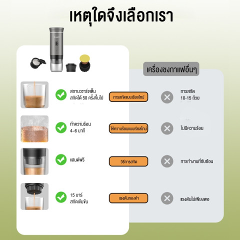 LENODI เครื่องชงกาแฟพกพา Portable Electric Espresso Machine เครื่องชงเอสเปรสโซแบบไร้สายที่ออกแบบมาเพื่อคนรักกาแฟสายเดินทาง ชงได้ทุกที่ทั้งที่ทำงาน ระหว่างขับรถ ตั้งแคมป์ หรือพกติดกระเป๋าไว้ใช้ในชีวิตประจำวัน มาพร้อมแรงดันสกัด 15Bar เพื่อครีม่าแน่น กลิ่นกาแฟชัด และความเข้มแบบเอสเปรสโซในแก้วเดียว