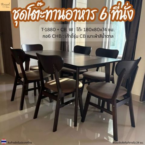 สเปคที่ลูกค้าเลือก: T-1580-F + CB-W (สีวอลนัท) + กอ6 CHG (เก้าอี้เบาะผ้าสีเทา 6 ตัว)