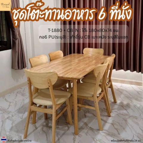 Minimal_deco โต๊ะทานข้าว ชุดโต๊ะทานอาหาร 6 ที่นั่ง ไม้ยางพาราแท้ ดีไซน์มินิมอลเรียบหรู เหมาะทั้งบ้าน คอนโด และห้องอาหาร จัดวางแล้วช่วยให้มุมทานข้าวดูอบอุ่นเป็นระเบียบ มาพร้อมความแข็งแรงรองรับการใช้งานจริง รับน้ำหนักได้สูงสุด 180Kg. (สินค้าพร้อมส่ง)