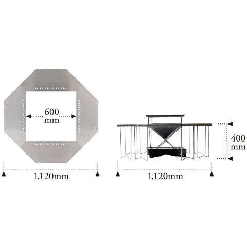 ขนาดเมื่อกาง: 1,120 × 1,120 × 400 (h) มม. (ช่องเปิด 600 × 600 มม.)