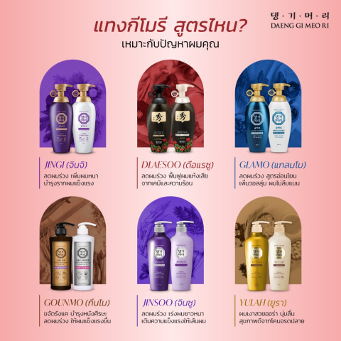 ดูแลเส้นผมและหนังศีรษะแบบพรีเมียมสไตล์เกาหลี ด้วย “แทงกีโมรี” ที่พัฒนาจากตำราแพทย์หลวงสมัยโชซอน และวิจัยคุณภาพต่อเนื่องยาวนานกว่า 12 ปี ผสานสารสกัดสมุนไพรเข้มข้น ช่วยให้ผมดูเงางาม มีน้ำหนัก นุ่มสวย ลดความมัน พร้อมช่วยลดการหลุดร่วงของเส้นผม เหมาะมากสำหรับผู้ที่ผมแห้งเสียและต้องการบำรุงล้ำลึกตั้งแต่รากจรดปลาย