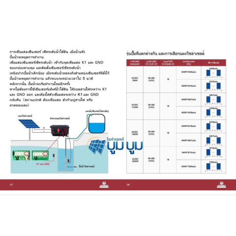 จำนวนแผงโซล่าเซลล์ที่แนะนำ (ตามกำลังปั๊ม)