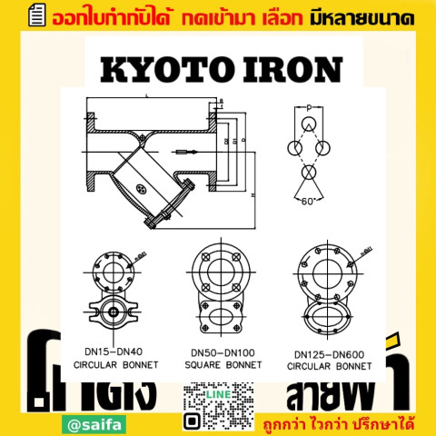 ประเภท: วายสแตนเนอร์เหล็กหล่อ (Cast Iron Y-Strainer)