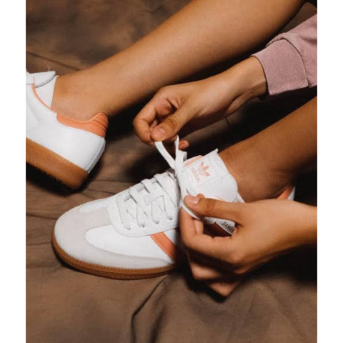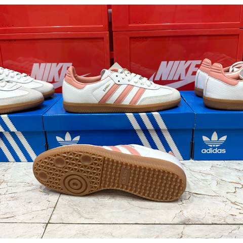 รองเท้าผ้าใบหญิง Adidas Samba OG ของใหม่มือ 1 แท้จากช้อปไทย ดีไซน์ระดับไอคอนที่เริ่มต้นจากรองเท้าฟุตบอลบนสนามหญ้า ก่อนก้าวสู่ตำนานสตรีทสไตล์ที่ใส่ได้ทุกยุคทุกสมัย รุ่นนี้คงเสน่ห์ดั้งเดิมไว้อย่างครบถ้วนด้วยอัปเปอร์หนังฟูลเกรนสัมผัสนุ่ม แต่งโอเวอร์เลย์หนังซูเอด และดีเทลฟอยล์สีทอง เพิ่มความพรีเมียมแบบคลาสสิก ใส่คู่กับลุคไหนก็ดูเท่มีสไตล์
