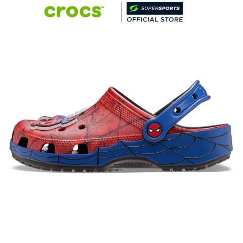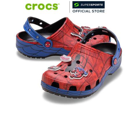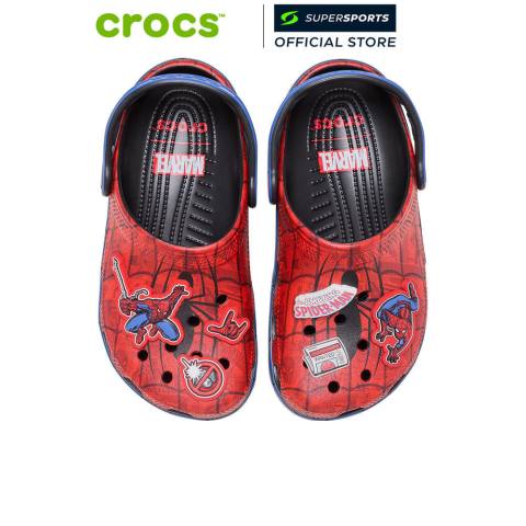 CROCS Spider-Man Classic Clog รองเท้าลำลองเด็ก ชวนซูเปอร์ฮีโร่ตัวจิ๋วพุ่งทะยานสู่ทุกภารกิจด้วยดีไซน์ธีม Spider-Man สีแดงสด ลายใยแมงมุมและกราฟิกท่าแอ็กชันสุดไดนามิกจากโลกการ์ตูน สวมง่าย เบาสบาย พร้อมลุยทั้งสนามเด็กเล่น ทริปครอบครัว หรือวันสบาย ๆ ได้ตลอดวัน ด้วยความนุ่มในตำนานของวัสดุ Croslite™ foam ที่รองรับแรงกระแทกแบบรอบทิศ