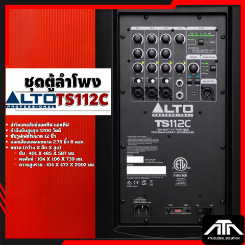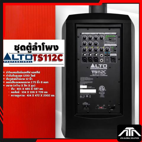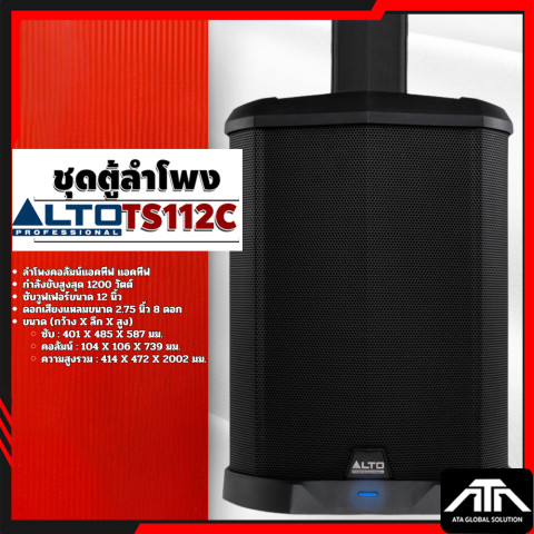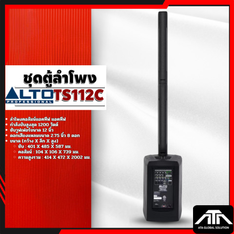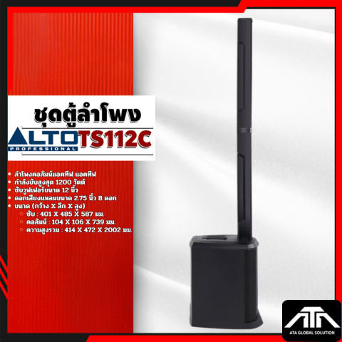 ALTO TS112C ลำโพงคอลัมน์แอคทีฟที่รวมพลังเสียงและความคล่องตัวไว้ในชุดเดียว พร้อมซับวูฟเฟอร์ 12 นิ้ว และคอลัมน์ลำโพงกลาง-แหลม 8 ดอก (2.75 นิ้ว) ขับเคลื่อนด้วยแอมป์ Class-D ให้เสียงเบสนุ่มหนานวลไม่กวนย่านอื่น กลาง-แหลมพุ่งชัด คอนทัวร์สนุก ฟังง่าย และให้ความดังสูง เหมาะกับงานที่ต้องการความเป็นมืออาชีพโดยไม่ต้องพกอุปกรณ์หลายชิ้น