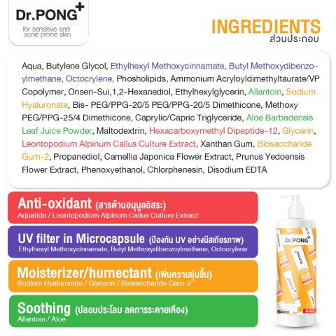 Dr.PONG Hyaluronic Ultra Light Sunscreen with Aquatide SPF50 PA+++ ขนาดคุ้มสุด 500 ml ครีมกันแดดสำหรับคนเป็นสิวและผิวแพ้ง่าย เนื้อบางเบาพิเศษ เกลี่ยง่าย ซึมไว ไม่เหนอะหน้า มาในขวดใหญ่แบบ Value Size ทาได้แบบ “สองข้อนิ้ว” ทุกวันโดยไม่ต้องกั๊ก คุ้มทั้งปริมาณและการปกป้องผิว