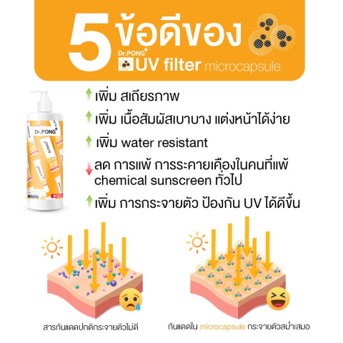 ป้องกันทั้งรังสี UVA และ UVB ช่วยลดโอกาสผิวหมองคล้ำ จุดด่างดำ และริ้วรอยจากแสงแดดเสถียรขึ้นด้วยเทคโนโลยี Microcapsule