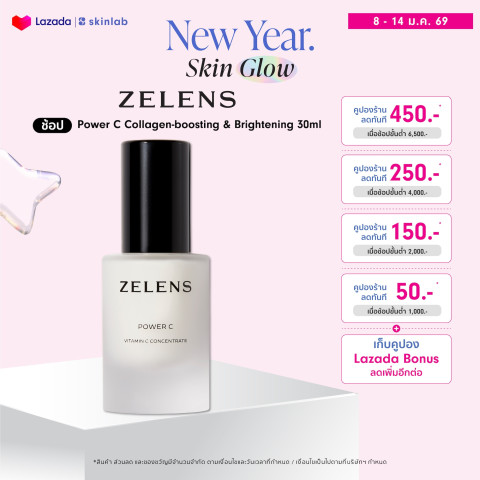 Zelens Power C Collagen-boosting & Brightening 30ml. เซรั่มวิตามินซีเข้มข้นเพื่อผิวดูแน่นกระชับ ยืดหยุ่น และกระจ่างใสอย่างเป็นธรรมชาติ เหมาะสำหรับผู้ที่กังวลเรื่องผิวหมองคล้ำ สีผิวไม่สม่ำเสมอ และเริ่มมีสัญญาณริ้วรอย ต้องการบำรุงแบบจริงจังด้วยเนื้อเซรั่มที่ซึมไว ใช้ได้ในทุกวัน