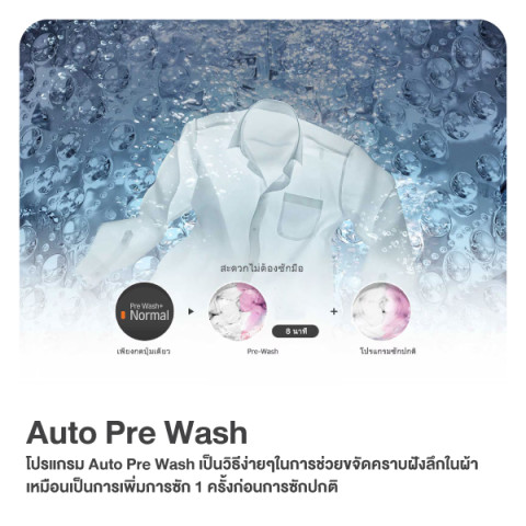 Auto Pre Wash ล้างคราบก่อนซักจริง เหมือนเพิ่มรอบซักให้สะอาดยิ่งขึ้น