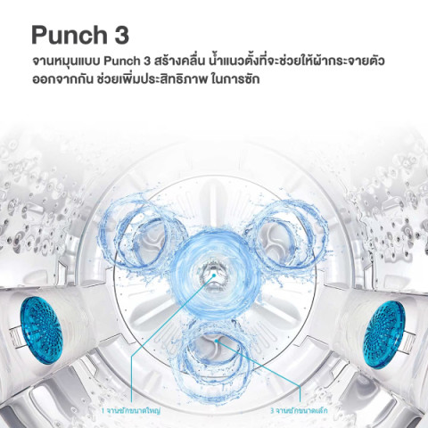 Punch+3 สร้างคลื่นน้ำแนวตั้ง กระจายผ้า เพิ่มประสิทธิภาพการซัก