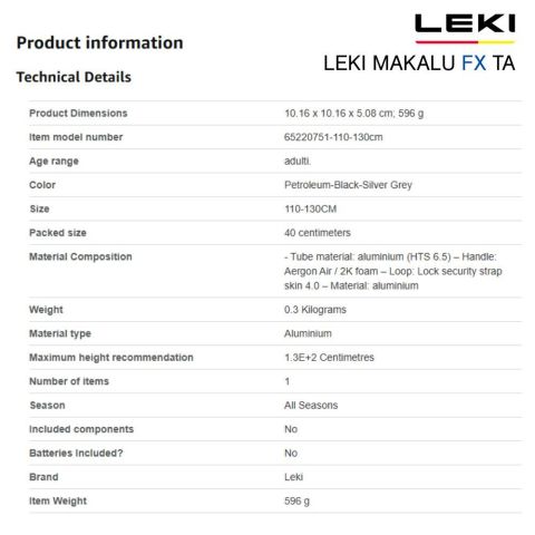 รุ่นสินค้า: Leki Makalu FX TA Lightweight Trekking Poles