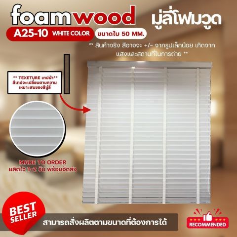 Custom Size 02 มู่ลี่ไม้ โฟมวูด Foamwood Blinds - A25-10 White Color (สีขาว) ขนาดใบ 50mm.