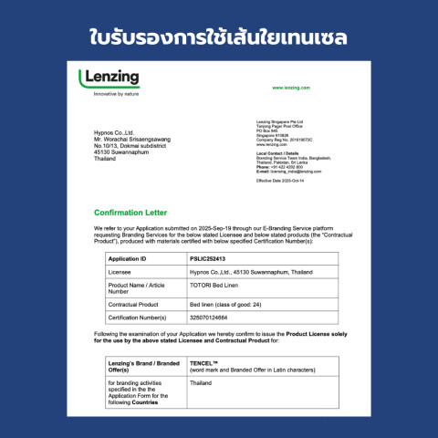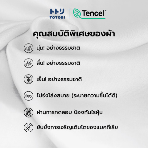 เส้นใยเทนเซล 100% ผลิตจากเนื้อไม้ของต้นยูคาลิฟตัส ให้ความรู้สึกเป็นธรรมชาติ