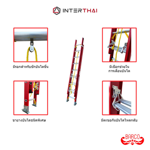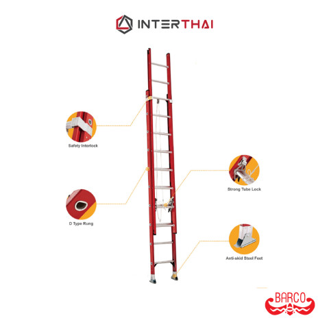 BARCO บันไดเลื่อนไฟเบอร์กลาส 20x20 ฟุต บันไดเลื่อนขึ้น-ลงได้แบบมืออาชีพ เหมาะสำหรับงานช่าง งานซ่อมบำรุง และงานติดตั้งที่ต้องการความปลอดภัยและความมั่นคงสูง โครงสร้างหลักผลิตจากไฟเบอร์กลาสคุณภาพดี ช่วยลดความเสี่ยงจากไฟฟ้าดูดและทนต่อการกัดกร่อน ส่วนขั้นเหยียบทำจากอลูมิเนียม 6061 แข็งแรง ทนทานต่อแรงกระแทก ใช้งานได้ยาวนาน รองรับน้ำหนักได้สูงสุดถึง 150 กก. เหมาะทั้งสำหรับช่างมืออาชีพและผู้ใช้งานทั่วไปในบ้าน