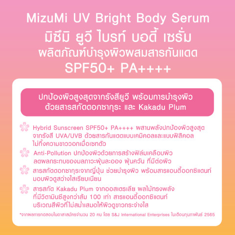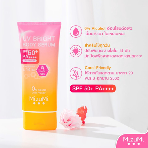 [แพ็คคู่] MizuMi UV Bright Body Serum (180 ml) เซรั่มกันแดดทาผิวกายเนื้อบางเบา ซึมไว เบาสบายผิว พร้อมกลิ่นหอมละมุน ช่วยปกป้องผิวจากแสงแดดและมลภาวะในทุกวัน เหมาะสำหรับใช้เป็นกันแดดผิวกายก่อนออกจากบ้าน ให้ผิวดูสว่างใส เรียบเนียนอย่างเป็นธรรมชาติ