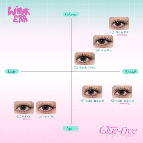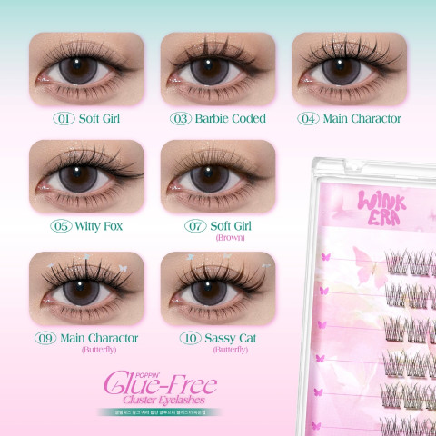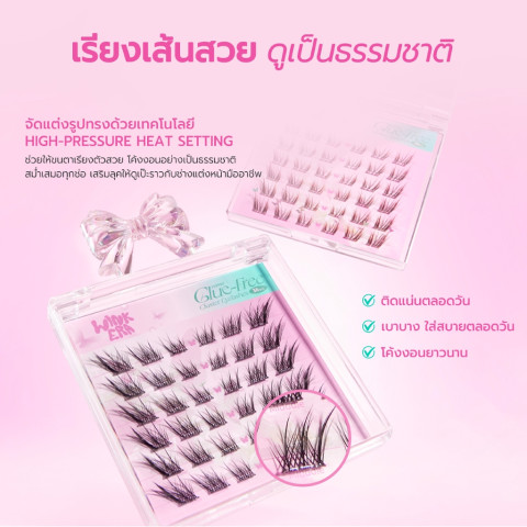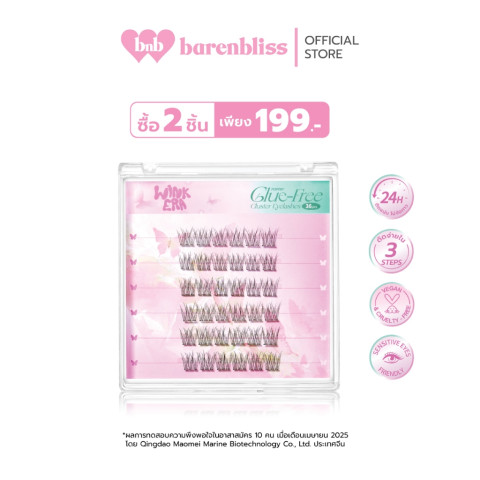 bnb barenbliss GLAMFIX Wink Era Poppin' Glue-Free Cluster Eyelashes ขนตาปลอมแบบคลัสเตอร์สุดฮิต ช่วยอัปดวงตาให้คมชัดมีมิติแบบ “สวยเนียนธรรมชาติ” ติดง่ายโดยไม่ต้องใช้กาว ลดความเลอะเทอะและประหยัดเวลา ยึดเกาะแน่นแต่ยังบางเบาสบาย ใส่แล้วไม่หนักตา มั่นใจลุคเป๊ะได้ยาวนานสูงสุด 24 ชั่วโมง เหมาะทั้งมือใหม่และคนที่ต้องการงานตาที่สวยไวในวันเร่งด่วน ในราคา 141.90