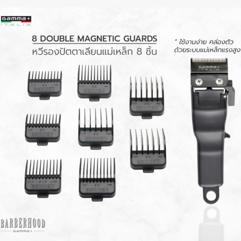 มีการ์ดรองหวีแม่เหล็กคุณภาพสูง 8 ชิ้น ครอบคลุมตั้งแต่ 1.5 – 19 มม. เปลี่ยนง่าย แน่นหนา ไม่หลุดระหว่างใช้งาน ช่วยให้คุณสร้างทรงผมได้หลากหลายตั้งแต่ทรงสั้นเฟดจนถึงทรงยาวมีเลเยอร์อุปกรณ์ครบเซ็ต พร้อมใช้งานทันที