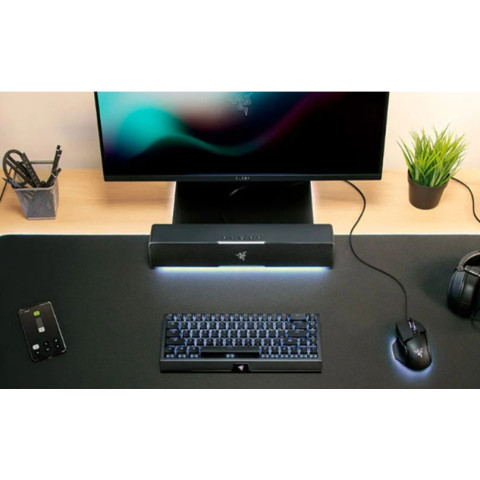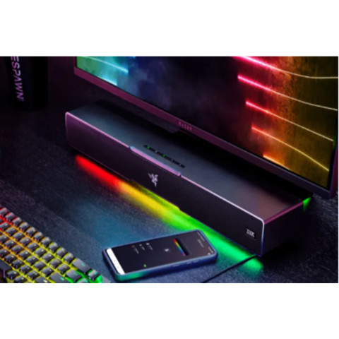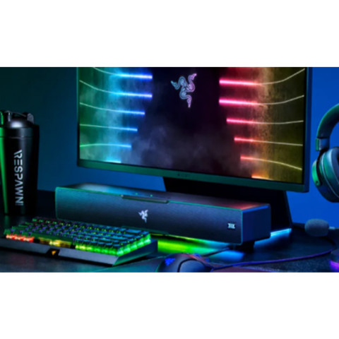 อัปเกรดเสียงหน้าคอมของคุณให้ทรงพลังและสมจริงกว่าที่เคยด้วย Razer Leviathan V2 – PC Soundbar and Subwoofer ลำโพงซาวด์บาร์พร้อมซับวูฟเฟอร์ดีไซน์กะทัดรัด ที่อัดแน่นด้วยพลังเสียงครบย่าน ตั้งแต่โทนแหลมใส เคลียร์ ไปจนถึงเสียงเบสลึก หนักแน่น เหมาะทั้งการเล่นเกม ดูหนัง และฟังเพลง ในราคาเพียง 5,999 บาท