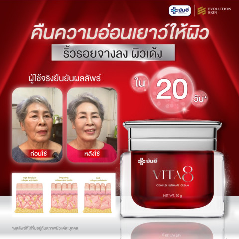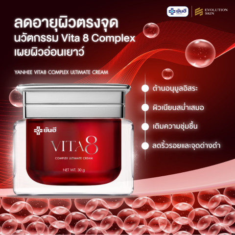 ค้นพบพลังการบำรุงผิวแบบครบสูตรด้วย YANHEE VITA8 COMPLEX ULTIMATE CREAM [เรด1 ไวต้าเอจ1 อาย1] ครีมบำรุงผิวหน้าสูตรเข้มข้นจากโรงพยาบาลยันฮี ที่ออกแบบมาเพื่อลดเลือนริ้วรอยอย่างมีประสิทธิภาพ พร้อมฟื้นฟูโครงสร้างผิวให้แน่น กระชับ ดูอ่อนเยาว์ เหมาะสำหรับผิวหน้าคนไทยวัย 40+ ที่ต้องการการดูแลเป็นพิเศษ
