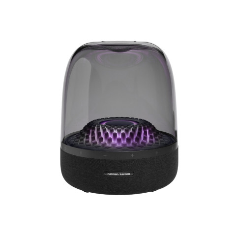 AURA STUDIO 4 ลำโพง HARMAN/KARDON ในโทนสีดำ ดีไซน์พรีเมียมที่โดดเด่นทั้งภาพและเสียง เติมบรรยากาศให้ทุกมุมห้องด้วยพลังเสียงรอบทิศทางแบบ 360 องศา เบสนุ่มลึก ฟังสนุกทุกแนวเพลง พร้อมไฟเอฟเฟกต์ Diamond อันเป็นเอกลักษณ์ที่เต้นไปตามจังหวะ ช่วยยกระดับประสบการณ์การฟังให้ “เห็น” ความมันส์ได้จริง