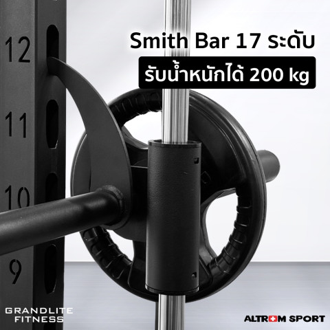 - Smith Machine: เล่นสควอท, เบนช์เพรส, อินคลายน์/ดีคลายน์, ช่วงล่างและช่วงบนได้ครบ