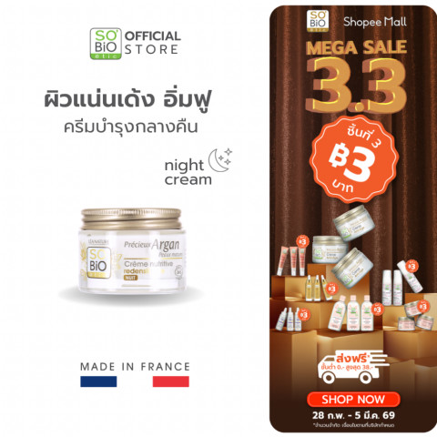 ชื่อสินค้า: SO'BiO etic Redensifying Night Cream ครีมกลางคืน 50+ ผิวแน่นเด้ง ย้อนวัย (SB-035)