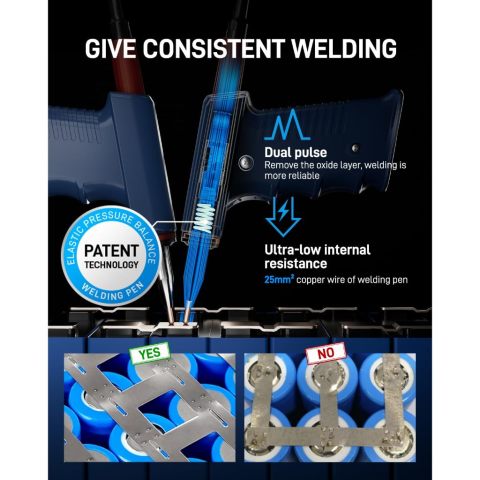 ด้วยเทคโนโลยีการเชื่อมแบบพัลส์รุ่นใหม่ GLITTER 801H ช่วยลดความร้อนสะสม ไม่ทำร้ายเซลล์แบตเตอรี่ แต่ยังคงให้แรงยึดเกาะสูงสุด ทดสอบแรงดึงได้ถึง 8 กก. ต่อจุดเชื่อม เรียกได้ว่าหนึ่งจุดเชื่อมแข็งแรงเท่ากับน้ำหนักแอปเปิลประมาณ 40 ลูก เชื่อมแน่น ไม่หลุดง่าย เหมาะสำหรับผู้รับทำแพ็คแบตเตอรี่ ร้านซ่อม และสาย DIY ระดับจริงจัง