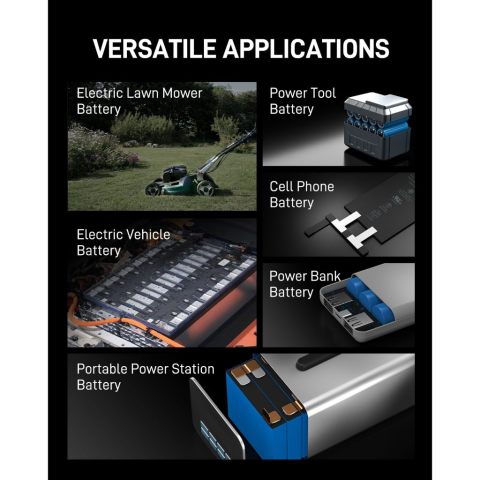 ตัวเครื่องออกแบบมาเพื่อรองรับการเชื่อมแบตเตอรี่หลากหลายประเภท ทำให้คุณใช้งานได้ครอบคลุมทุกงาน:แบตเตอรี่ทรงกระบอก: 18650, 21700, 32650, 26650 ฯลฯ