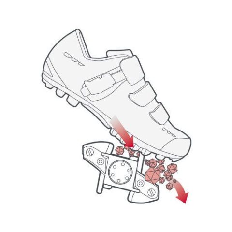 ATAC ถูกออกแบบมาเพื่อให้การใส่และถอดรองเท้าบนบันไดคลิปเลสเป็นเรื่องง่ายและเป็นธรรมชาติ ด้วยมุมรับคลีตกว้าง (wide-angle step-in) ช่วยให้คุณวางเท้าลงแล้วเข้าล็อกได้แทบจะทันที ไม่ต้องเล็งมาก อีกทั้งโครงสร้างบันไดที่เปิดโล่งด้านหน้าและด้านข้าง ช่วยระบายโคลนและเศษดินโดยอัตโนมัติทุกครั้งที่คุณคลิกเข้า ทำให้การล็อกและปลดเท้าเชื่อถือได้ ไม่ว่าทางจะเละ สมบุกสมบัน หรือแข่งในสภาพฝนโคลนก็ตาม