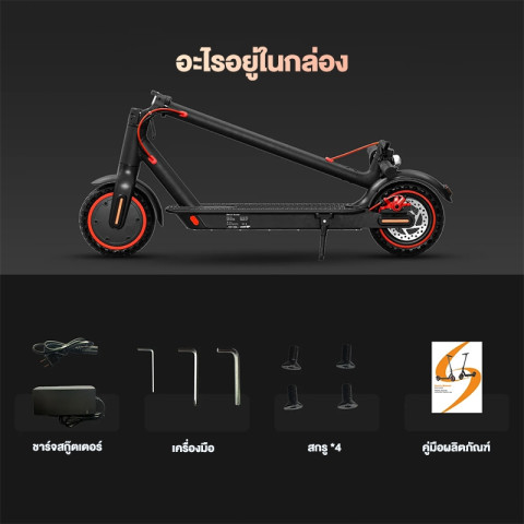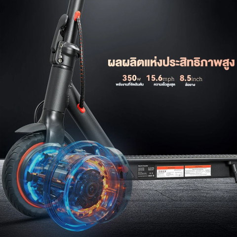 ล้อขนาด 8.5 นิ้ว พร้อมยางคุณภาพสูง ช่วยซับแรงสั่นสะเทือนจากพื้นถนน เพิ่มความนุ่มนวลในการขับขี่ ขนาดตัวเครื่องเมื่อกาง: ประมาณ 108 x 43 x 114 ซม. และเมื่อพับ: ประมาณ 108 x 43 x 49 ซม. พับเก็บง่าย ใช้พื้นที่น้อย สามารถเก็บในคอนโดห้องเล็กหรือท้ายรถยนต์ได้อย่างสบาย