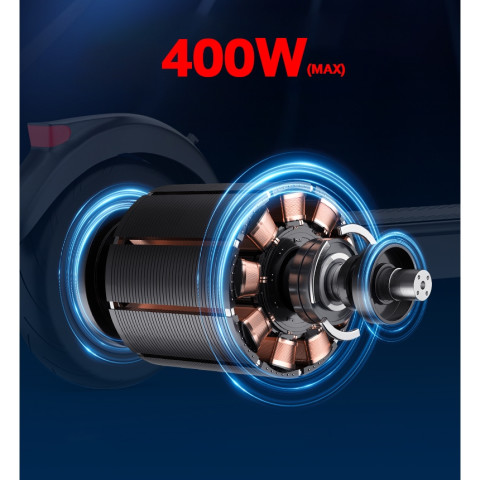 มอเตอร์ไฟฟ้าทรงพลัง ขับเคลื่อนด้วยกำลังสูงสุด 350–400W และแรงบิด 16 นาโนเมตร ทำความเร็วได้สูงสุด 30 กม./ชม. พร้อมโหมดประหยัดพลังงาน 18 กม./ชม. เหมาะสำหรับผู้เริ่มต้นหรือการขับขี่ในพื้นที่คนเยอะ รองรับการไต่ทางลาดได้ถึง 14 องศา ระบบพลังงานทดแทนช่วยเพิ่มประสิทธิภาพการใช้มอเตอร์และยืดระยะทางการใช้งาน