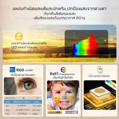 แสง 3 โทนในโคมเดียว: ระบบแสงแบบ 3 สี ปรับเปลี่ยนได้ด้วยสวิตช์ผนัง (เปลี่ยนสีด้วยการกดเปิด–ปิด)