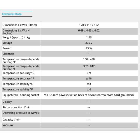 อุปกรณ์ในชุด: สถานีบัดกรี WS 81, หัวแร้ง WSP80, แท่นวางหัวแร้ง พร้อมฟองน้ำทำความสะอาด (หรือเทียบเท่า)