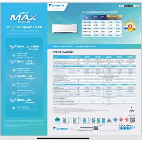 หากคุณกำลังมองหาแอร์บ้านคุณภาพสูง ประหยัดไฟ คุ้มค่า พร้อมบริการติดตั้งครบชุดในราคาเดียว DAIKIN MAX INVERTER รุ่น FTKB-ZV2S ขนาด 20,500 BTU คือหนึ่งในตัวเลือกที่ตอบโจทย์ ทั้งด้านประสิทธิภาพ ความทนทาน และบริการหลังการขาย